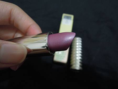 中間是03,玫瑰紅色。左邊第二個AL,看起來是金屬紫,當初沒試色便買了,上唇就顯唇色白..